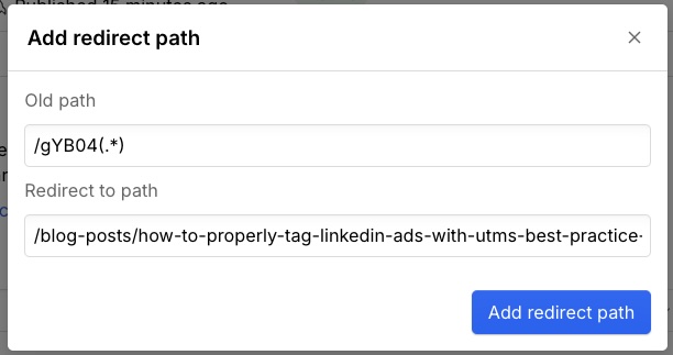 - The "(.*)" at the end of the old path basically captures any appended parameters (like UTMs)