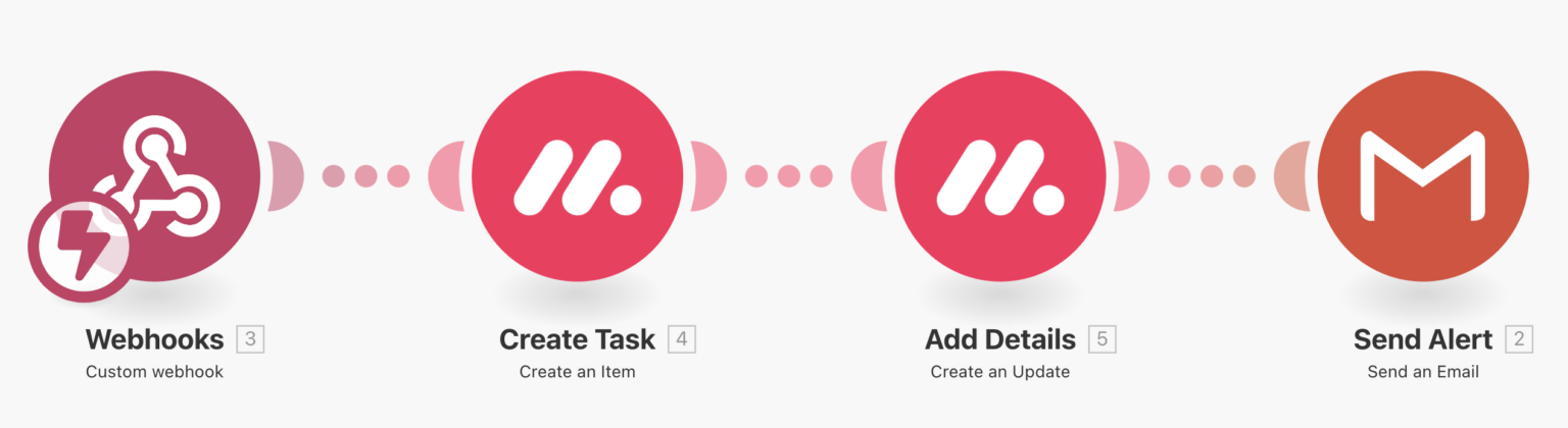 We chose Make for this step because it’s less technical than PipeDream and is already integrated with our tools like Monday and Gmail.